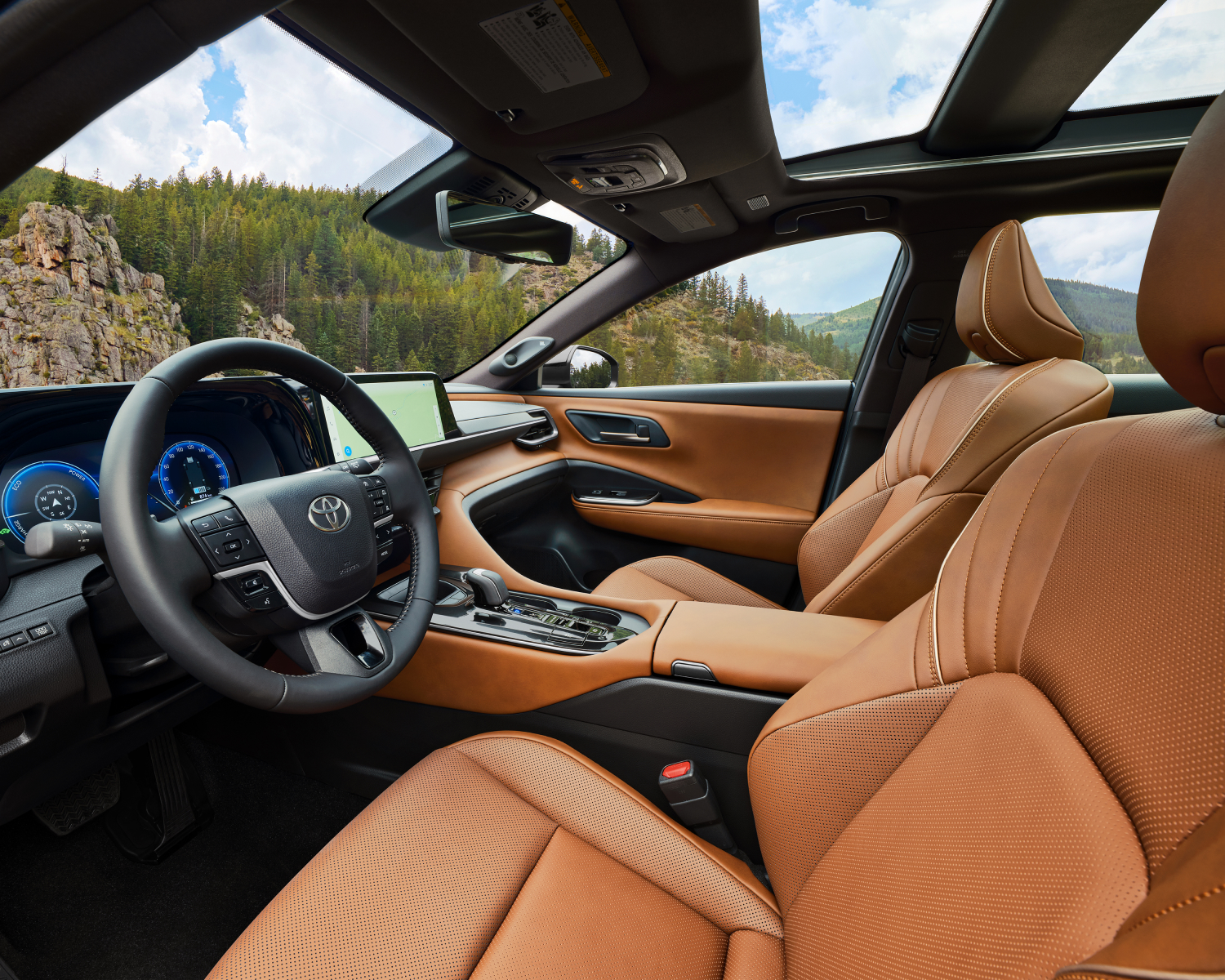 The Crown Signia’s design philosophy continues to its interior, where comfort, space, and technology converge. The cabin is a sanctuary of luxury, featuring high-quality materials, meticulously crafted surfaces, and an intuitive layout that places everything within easy reach of the driver. Spacious seating, with ample legroom and headroom, ensures that all passengers can enjoy long journeys in comfort. The panoramic sunroof floods the cabin with natural light, adding to the sense of openness and connectivity in the cabin. Whether you’re driving through city streets or embarking on a cross-country adventure, The Crown Signia can handle it all.